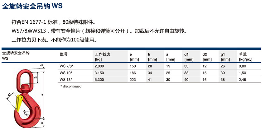 培瓦克Pewag全旋轉(zhuǎn)安全吊鉤WS